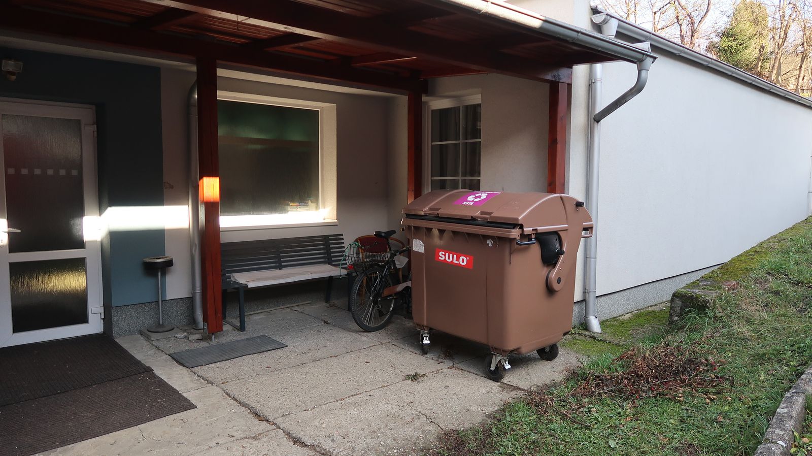 jsou dočasně (leden 2026) umístěny na odpadovém centru vedle kontejnerů na papír a u bočního vchodu do tělocvičny.