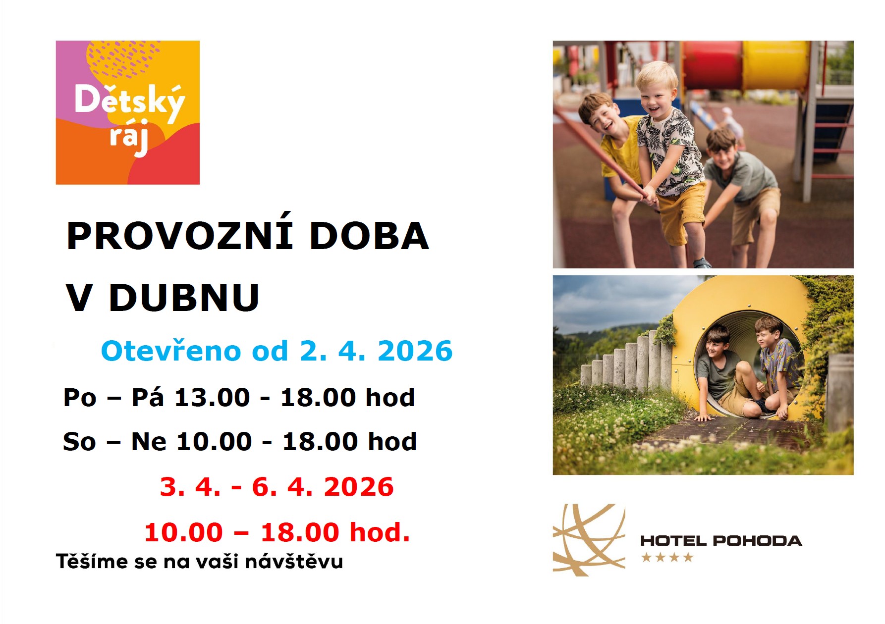 Provoz Dětského ráje na hotelu Pohoda